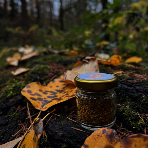 Straight from the hive to your bowl! This bee pollen is harvested with care in small 1oz batches because it is a precious resource to the bee hives. This golden superfood is used by wellness enthusiasts for supporting seasonal comfort and natural vitality. Sprinkle it over yogurt, blend it into smoothies, or enjoy it solo—a tiny pinch packs serious nutritional punch. Nature's little energy boost has never tasted so good!