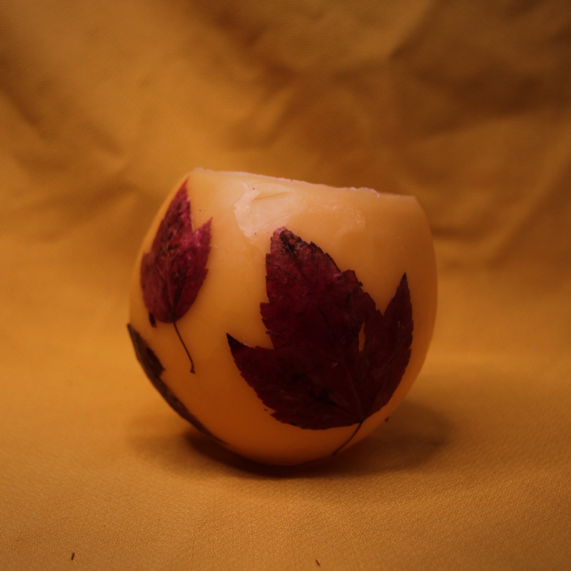 Capture the magic of autumn with this charming wax lantern that celebrates the season in style. Vibrant maple leaves dance against warm golden beeswax, creating a stunning visual. Protective stones shield the lantern from heat while the included tea candle flickers to life inside. Want to skip the flame? Simply swap in a battery-powered light for all the ambiance without the worry. Perfect for sprucing up your space or surprising someone you care about, this little nature-inspired treasure radiates comfort and enchantment wherever it glows.