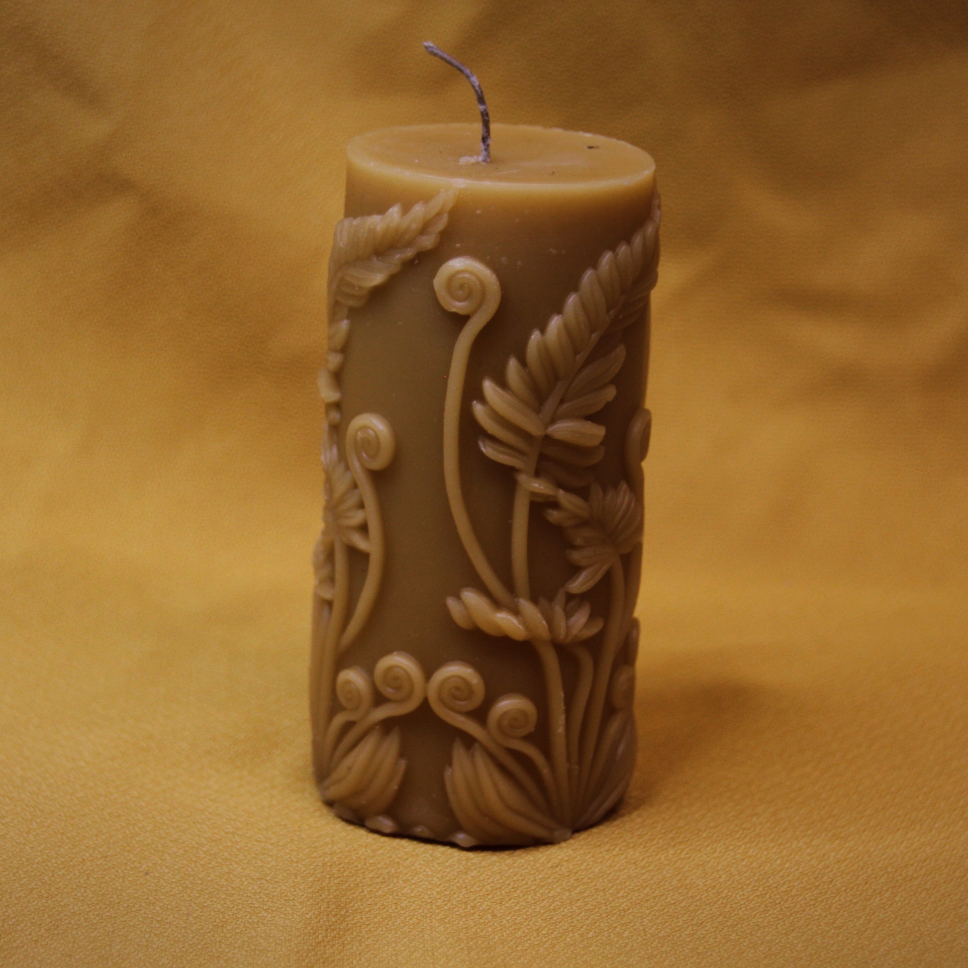 This handcrafted beeswax candle features an enchanting fern design straight from our hives. But it's more than just ambiance; it's a little act of kindness for Mother Earth. When you light it, you're cheering on local beekeeping, giving pollinator friends some love, and choosing sustainability with style. Perfect for brightening your own space or making someone smile, this candle pairs warmth with a whole lot of good vibes.