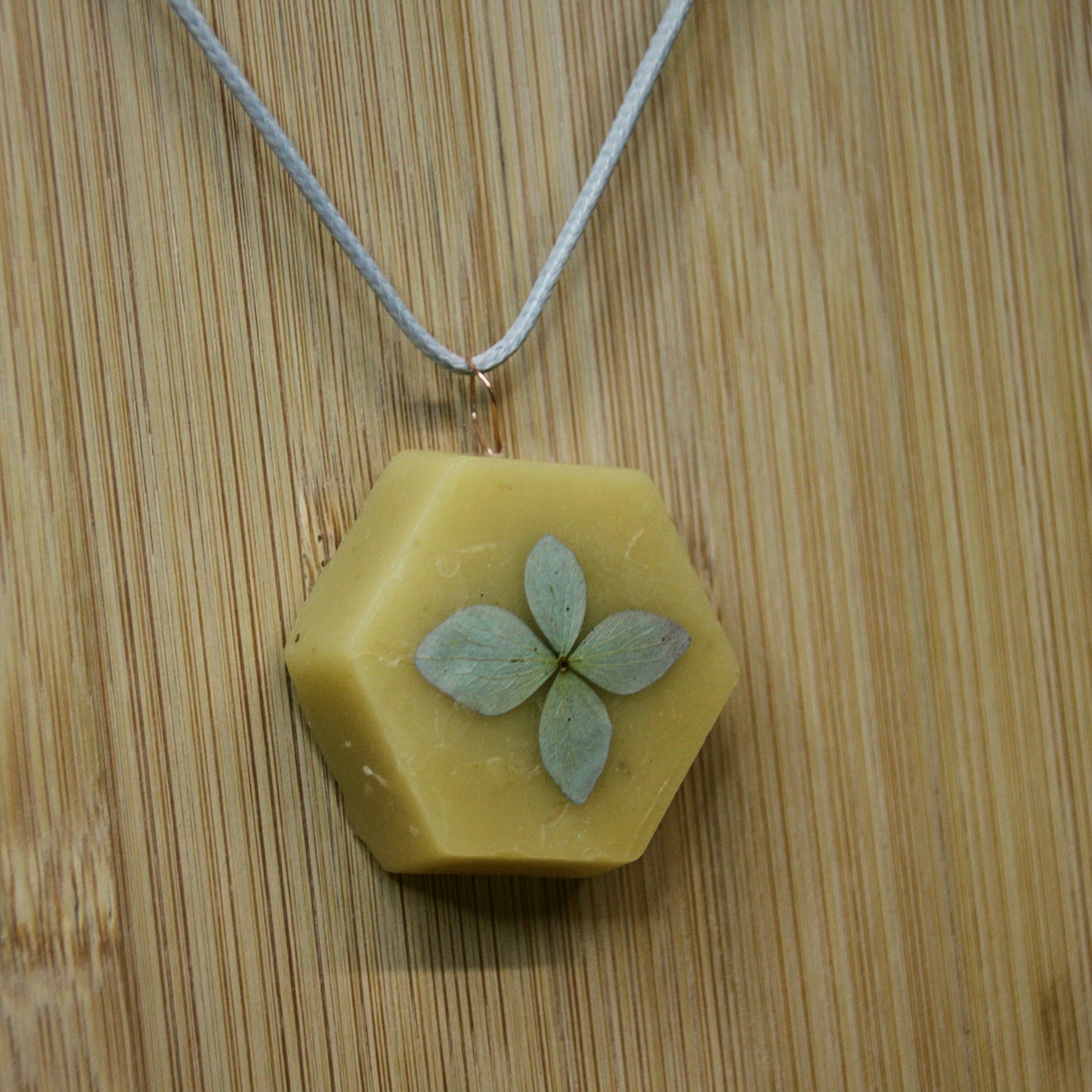 Carry a slice of nature's beauty around your neck with this enchanting beeswax-preserved hydrangea pendant. Delicate petals are suspended in pure beeswax, creating a luminous charm that radiates warmth and natural elegance. Strung on soft, colored hemp cord, this necklace doubles as a gentle aromatherapy companion—the subtle honey-like scent of beeswax follows you throughout your day. Perfect for garden lovers who want to keep their favorite blooms close..